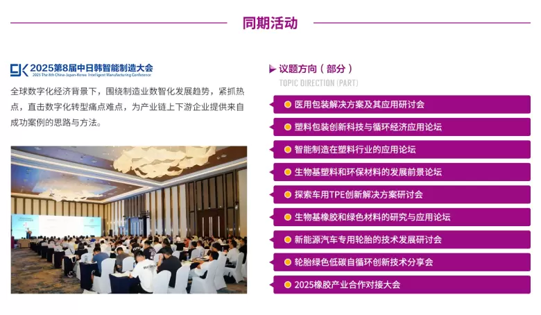 亚太橡塑展立足北方,辐射全国,汇通亚太,聚焦橡塑行业最新智能装备、热点新材料。通过产品展示、论坛及研讨会,为采购商提供全方位行业尖端智能装备及成套解决方案,实现专业观众与参展商零距离对接洽谈合作。2025亚太国际橡塑展将于2025年7月10-13日,携1800+家全球优质供应商,巨献海量创新材料及机械科技,亮相青岛世博城国际展览中心。让我们相聚2025亚太国际橡塑展,抓住市场黄金发展机遇,变局中求新局,共同探索内外双循环下的发展之路。