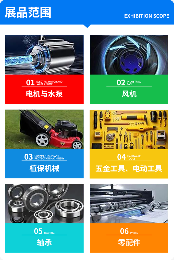 展会涵盖电机、水泵、机床、风机、五金工具、自动化设备、轴承等全品类产品,是工业智能与制造装备企业品牌推广、渠道拓展及传播智能工业设备市场信息的关键平台。