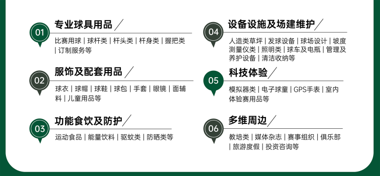 通过供应链对接、技术成果分享、金牌教练评选、跨境服务等特色内容,为高尔夫全行业打造一站式装备用品采购平台。同时借力港澳国际窗口吸引全球品牌入驻,助力湾区建设世界级休闲旅游目的地和体育产业创新高地。