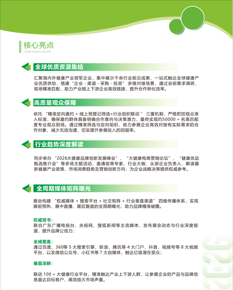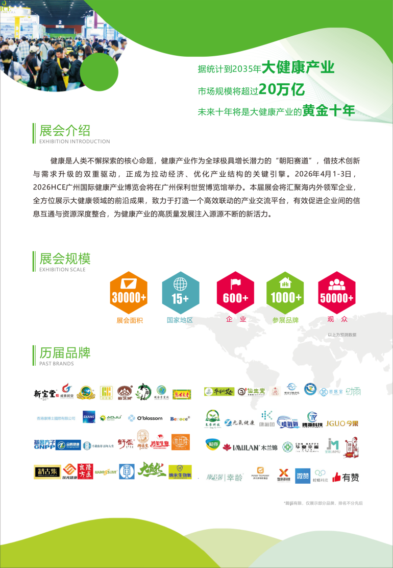 健康是人类不懈探索的核心命题,健康产业作为全球极具增长潜力的"朝阳赛道",借技术创新与需求升级的双重驱动,正成为拉动经济、优化产业结构的关键引擎。2026年4月1-3日,2026HCE广州国际健康产业博览会将在广州保利世贸博览馆举办。本届展会将汇聚海内外领军企业,全方位展示大健康领域的前沿成果,致力于打造一个高效联动的产业交流平台,有效促进企业间的信息互通与资源深度整合,为健康产业的高质量发展注入源源不断的新活力。