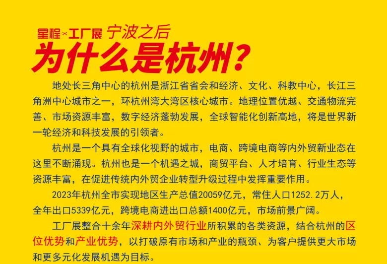 “中小工厂展览会Factory Fair“(工厂展)创办于2007年,参展企业以中小微生产工厂为主体,故称“中小工厂展”,2022年通过国际展览业协会(ufi)认证。每年5月在杭州举行,11月在宁波举行。展会旨在为中小工厂与贸易商及批量客户之间搭建桥梁,坚持以“从生产源头采购”为展会主旨,为同类题材国内首创,现已成为华东地区极具影响力的内外贸综合采购平台。
