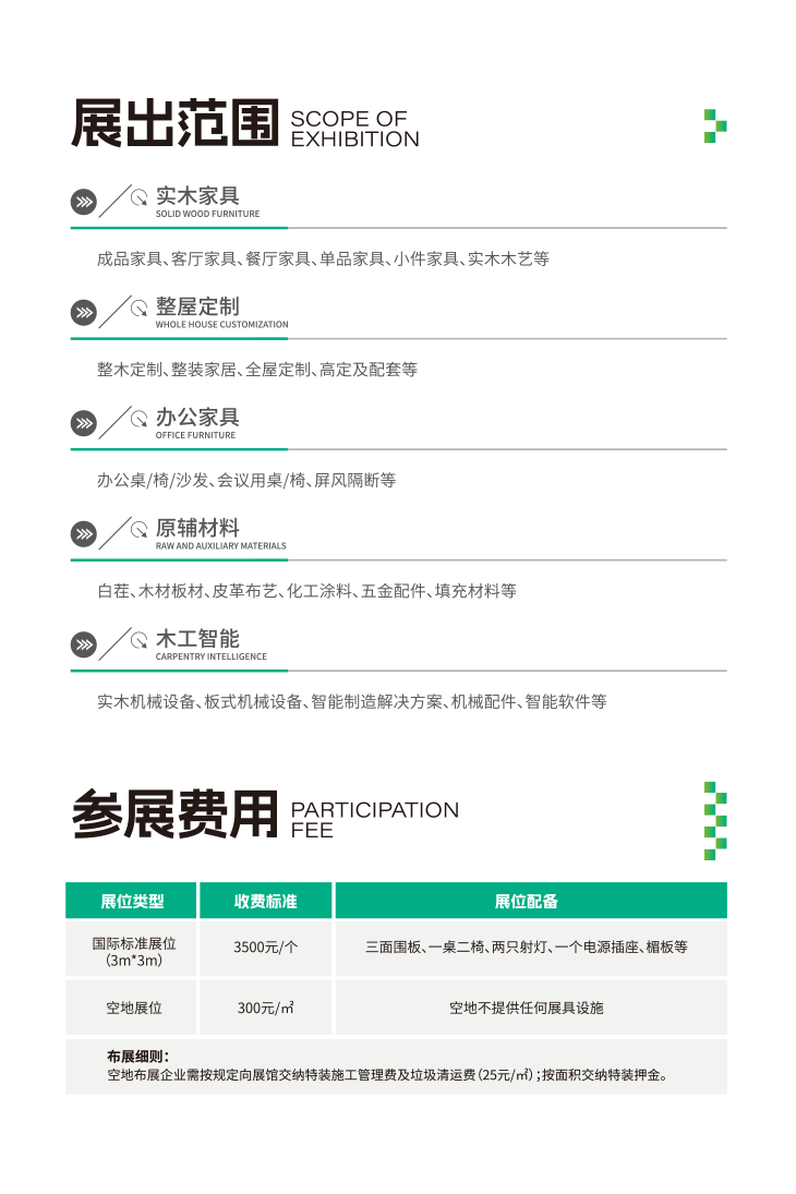 本届展会全面迭代升级,延续“实木十定制”发展主轴,聚焦新产品、新材料、新业态,深度展现实木全产业链的前沿成果与多元潜力。展会以打造高规格、高质量行业盛会为目标,为企业搭建集实力展示渠道拓展、品牌提升于一体的优质平台,通过精准对接上下游资源,助力企业洞察行业趋势、挖掘商业机遇,加速转型升级、迈向新高度。