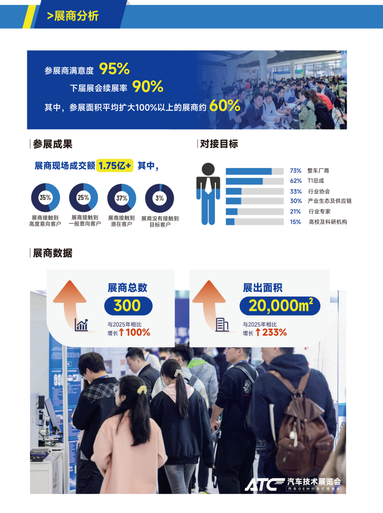 2025汽车测试展已于2025年3月26-28日在上海汽车会展中心成功落下帷幕,ATC汽车技术平台同期联动汽车动力展与汽车热管理展,成功汇集200余家参展企业,吸引15,326名专业观众,规模与行业影响力再度攀升。