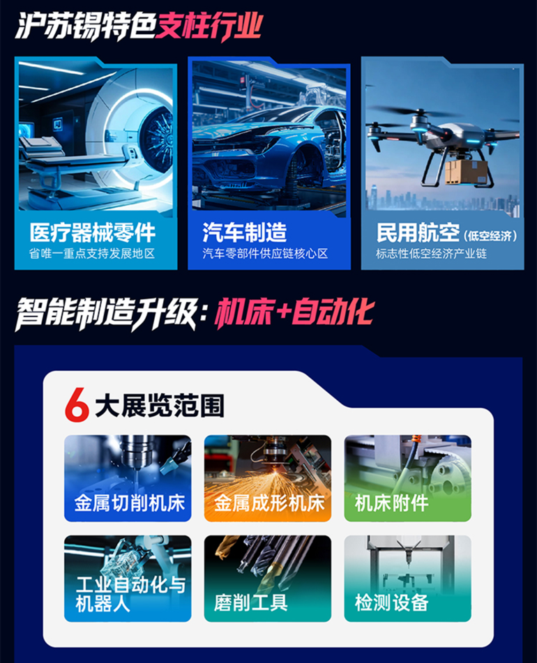 高端装备,产业标杆。2026年第八届苏州国际机床展,助力苏州“3年冲3万亿”,定于2026.4.9-12在苏州国际博览中心重磅举办