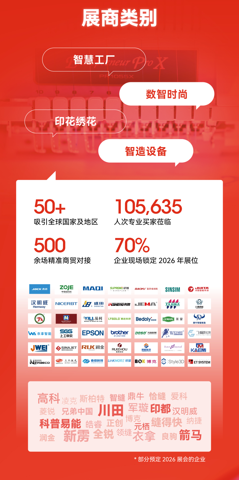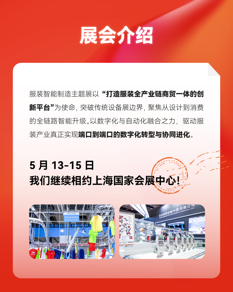 服装智能制造主题展以“打造服装全产业链商贸一体的创新平台”为使命,突破传统设备展边界,聚焦从设计到消费的全链路智能升级。以数字化与自动化融合之力,驱动服装产业真正实现端口到端口的数字化转型与协同化。