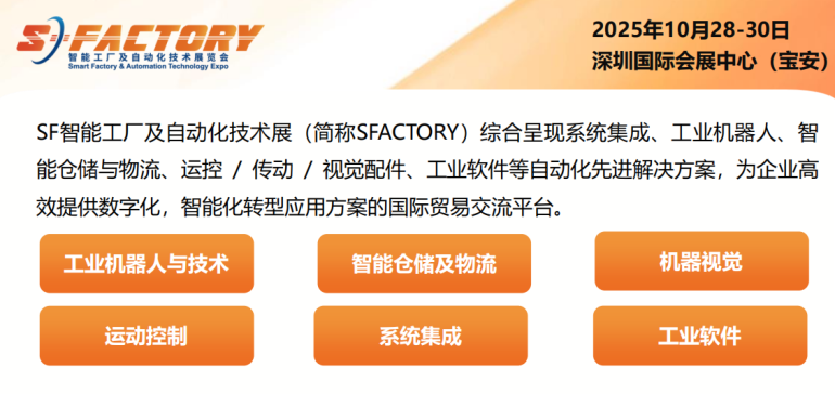 深圳国际智能工厂及自动化技术展览会(S-FACTORY EXPO)是业界率先汇聚六大板块包括:机器视觉、物联网与大数据、工业软件、工业机器人、系统集成、智能仓储与物流等涉及“智慧工厂”先进技术的展览会。
