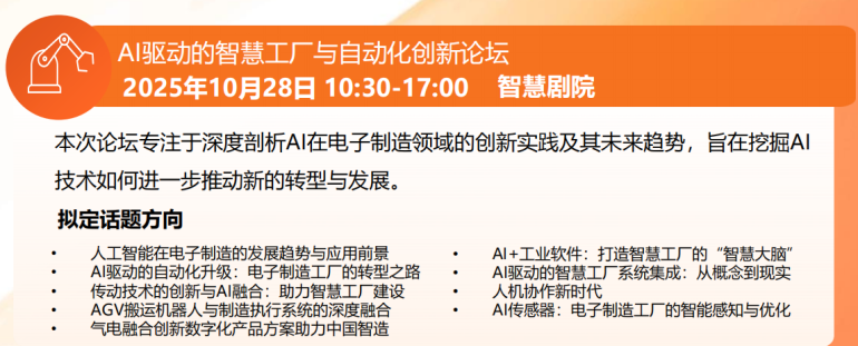 观众范围消费电子和家电;电脑、系统及外围设备;通信系统;航空电子及军用电子;原始设备制造商;电子制造服务商/原始设计制造商等;印刷电路板制造;触摸屏/平板显示制造等等。深圳国际智能工厂及自动化技术展览会(S-FACTORY EXPO)着力打造智能工厂及自动化技术产业连通平台。