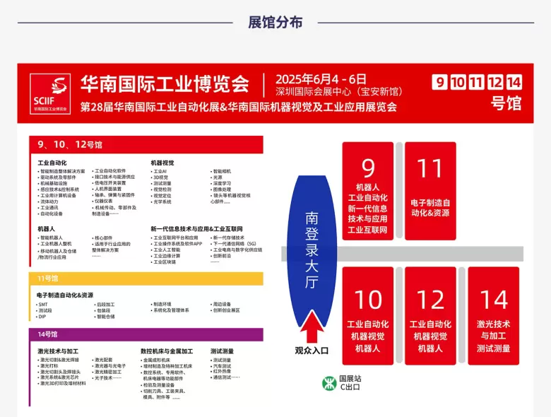 2025年6月4日-6日,华南国际工业博览会将与您相约深圳国际会展中心(宝安新馆)2025华南工博会将更进一步整合和迭代旗下主题展,带来包括工业自动化展、机器视觉展、激光技术展、数控机床与金属加工展、机器人展、新一代信息技术与应用展、工业互联网展、测试测量展、CMM 电子制造自动化&资源展在内的八大主题展区,这场工业盛会将全面覆盖从原材料到生产设备到信息技术再到集成制造,打通智能制造上下游产业链,是一场全且深,专且精的工业盛会,届时将吸引超过800家国内外知名企业带来新产品、技术和解决方案。