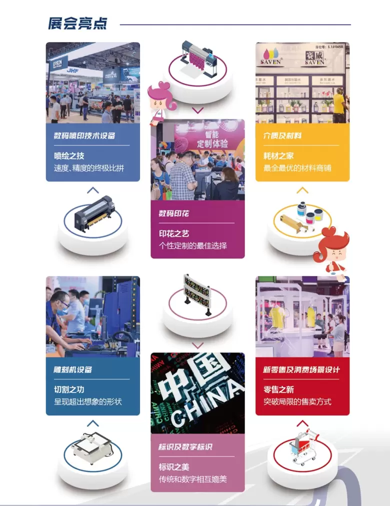 上海国际广印展APPP EXPO打通广告标识业上下游关系,形成从灵感构思、创意设计,直至内容实现的完整系统。展品范围涵盖:数字喷印、数码印花、雕刻切割、标识标牌、展览器材、POP及商用设施和数字标牌、数字展示、LED产品及3D打印技术等诸多领域。