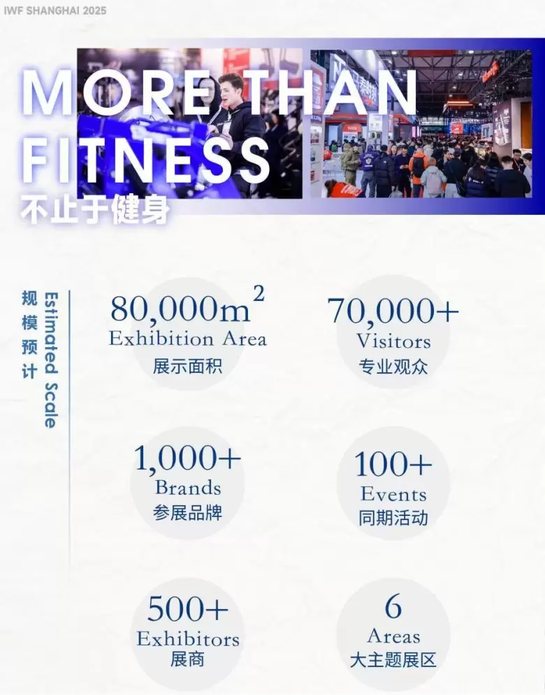 IWF上海国际健身展作为亚太地区运动健身行业风向标,将于2026年3月13日迎来第13届展会的盛大开幕 。锚定“大体育+大健康“市场,聚焦“中国质造”外贸出口和民族品牌跨境出海,以“MORE THAN FITNESS不止于健身”为主题,深耕商用及家用健身器材贸易对接服务,积极拓展运动休闲、台球桌式运动、青少年体育教育等细分领域,不断优化B2B采购模式,打造国际运动健身用品一站式采购商贸平台。