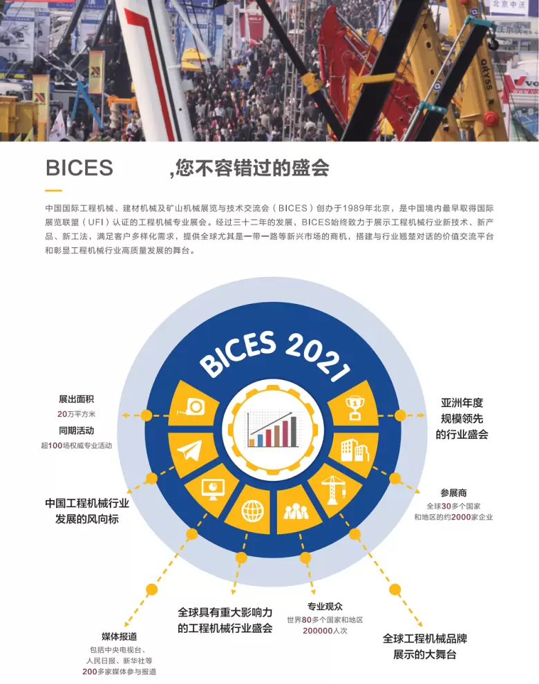 中国北京国际商用车展览会(BICES)中国商用车行业综合展示平台。着眼行业的未来发展,进一步延伸BICES的展示链条,集中展示卡车、工程车辆、重型运输车辆、矿用车辆、环卫车辆、抢险救援等与工程建设、特种运输密切相关的商用车产品。共同的市场结构,互补的观众群体,将不断为业界创造更多价值。