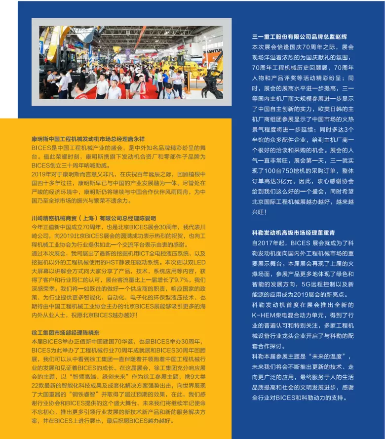北京国际工程机械展(BICES)创办于1989年,是国内最早取得国际展览联盟(UFI)认证的工程机械专业展会,已成为中国工程机械行业发展的风向标和全球工程机械展示的大舞台。