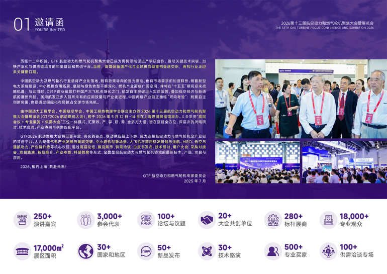 历经十二年积淀,GTF 航空动力和燃气轮机聚焦大会已成为两机领域促进产学研合作、推动关键技术突破、加快产业化与供应链培育的年度盛会和共创平台。当前,高端装备国产化与全球供应链重构提速交织,两机行业正迎来关键窗口期。