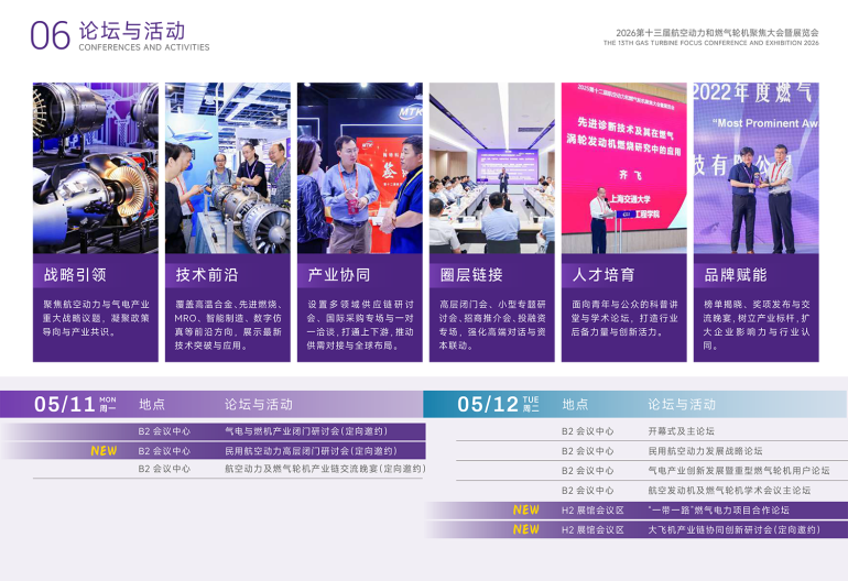 由中国动力工程学会、中国航空学会、中国工程热物理学会联合主办的 2026 第十三届航空动力和燃气轮机聚焦大会暨展览会(GTF2026 航动燃机大会),将于 2026年5月12日 -14日在上海世博展览馆举办。大会采用“高层会议+专业展览+供需大会"三位一体模式,汇聚政、产、学、研、用、金多方力量,旨在搭建全方位、深层次的战略研讨、技术交流、产业协同与供需匹配平台。