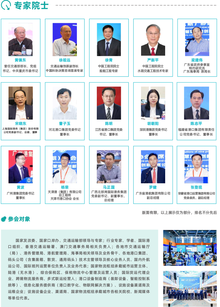 当前粤港澳大湾区正打造全球港航创新标杆,现诚挚邀请全球港航运营商、科技企业、设备制造商等业界同仁齐聚广州。期待以本次"展览+论坛+研讨"盛会为载体,共建创新转化、经验共享、合作共赢的开放平台,助力全球港航业高质量发展!