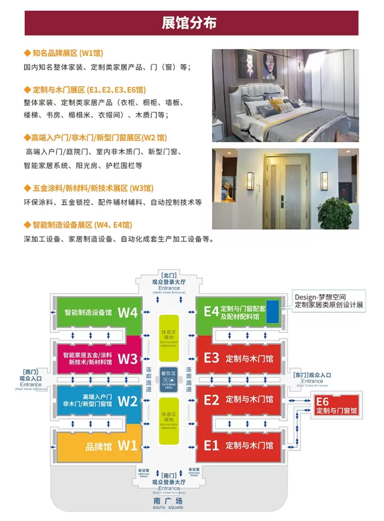 高端入户门/非木门/新型门窗展区:高端入户门/庭院门、室内非木质门、新型门窗、智能家居系统、阳光房、护栏围栏等