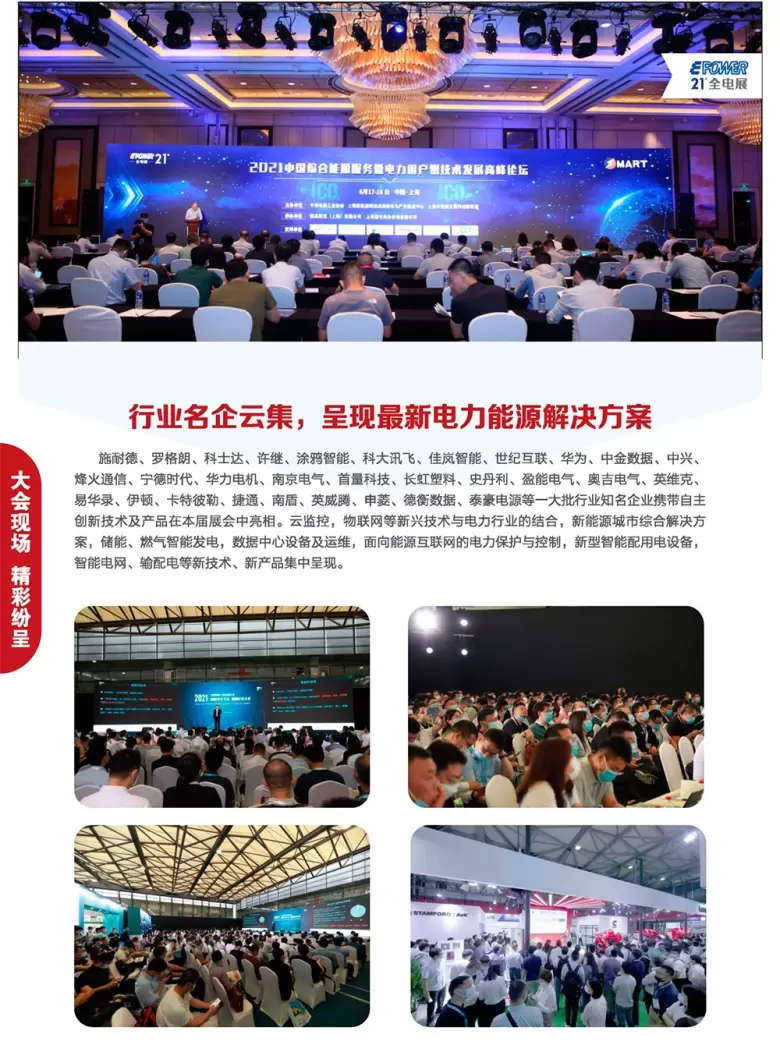 全电展-中国上海全电展(EPOWER)由中国电器工业协会、中国电工技术学会、上海市节能协会分布式供能专业委员会共同举办。覆盖全产业链、呈现电力行业解决方案。