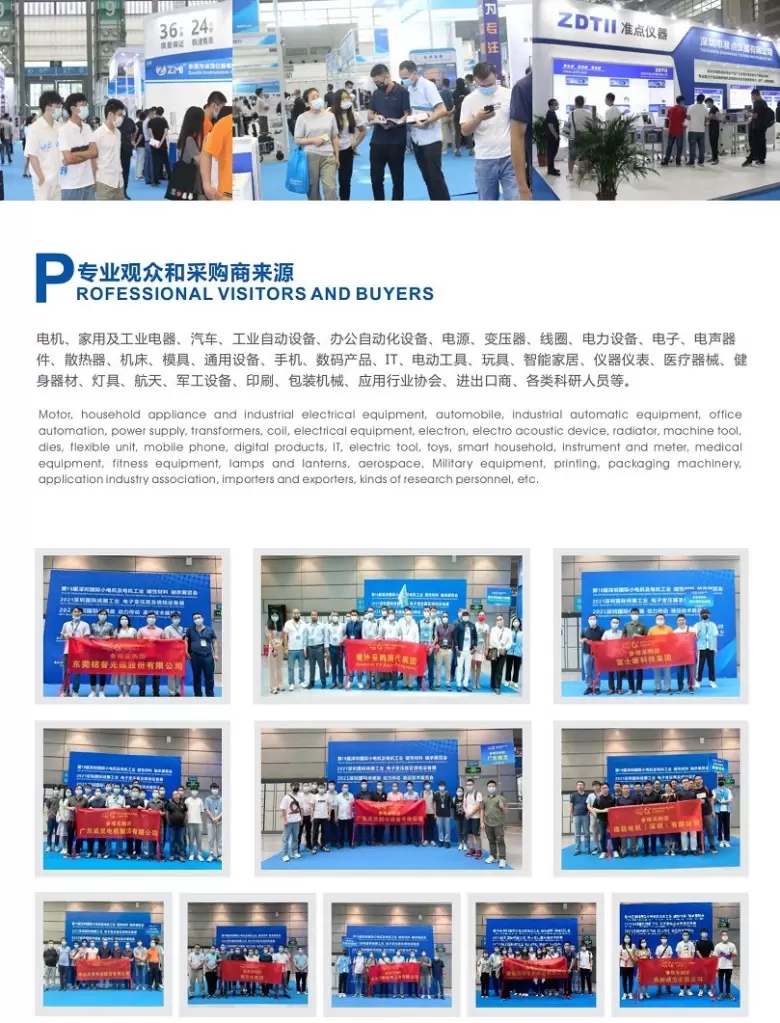 深圳国际小电机及磁性材料展览会Motor & Magnetic Expo展会还接待了知名的参观团:德昌电机、捷和电机、比亚迪汽车、富士康、华为、中兴、安泰科技、中科三环、中航工业、广汽零部件、格力电器、格兰仕、松下、中国金属学会非晶合金分会参观团、珠海凯邦电机、威灵电机、深圳顺络电子股份、深圳睿瀚医疗科技、深圳威枫豪斯新能源科技、电子科技大学参观团等采购商代表组团均到会参观采购。